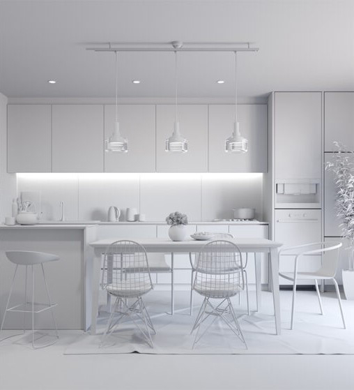 インテリアCGはテクスチャーと外光、照明の設定が重要です。 そして、撮影物が至近距離なのでモデル制作の正確さが求められます。